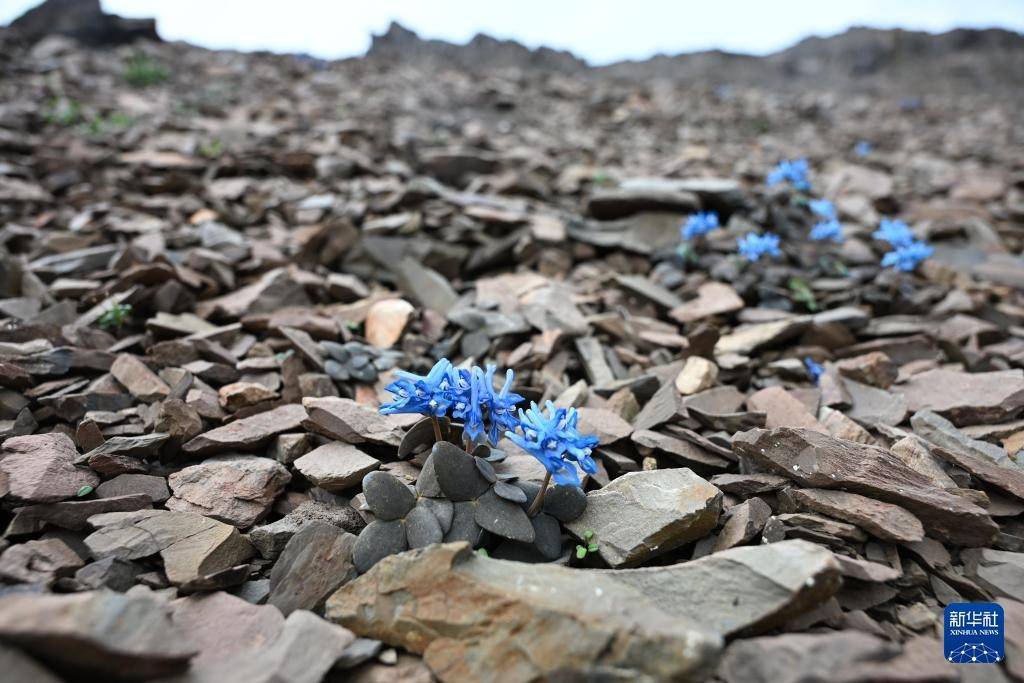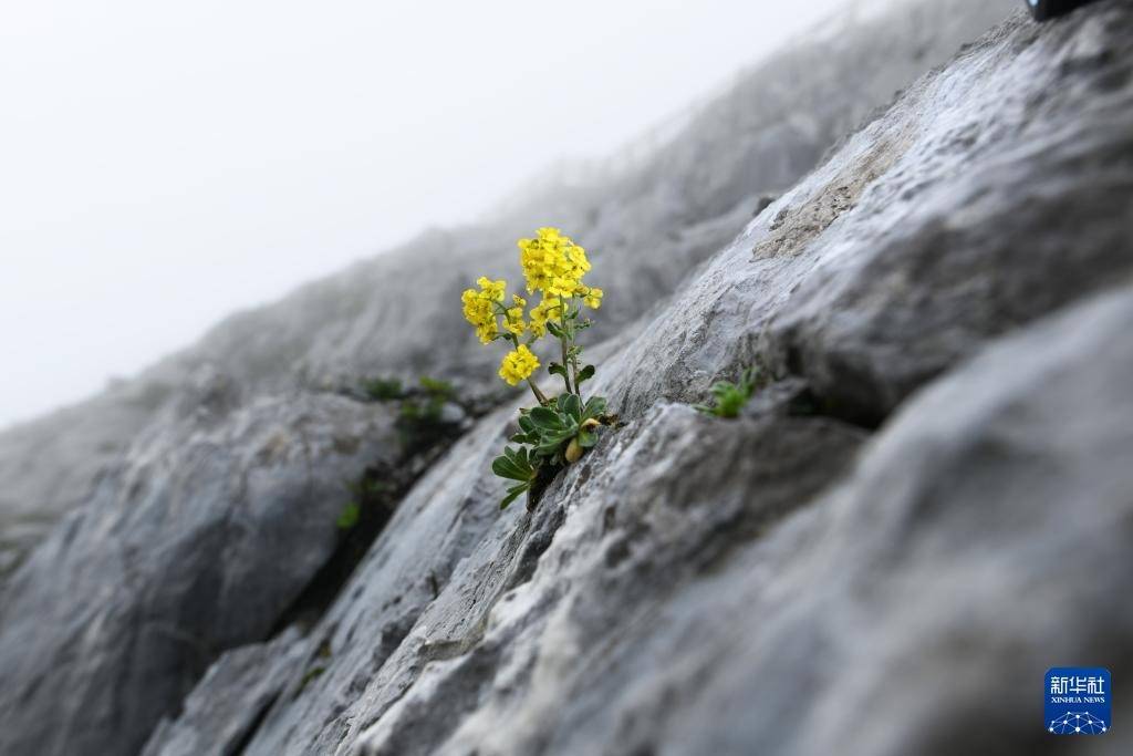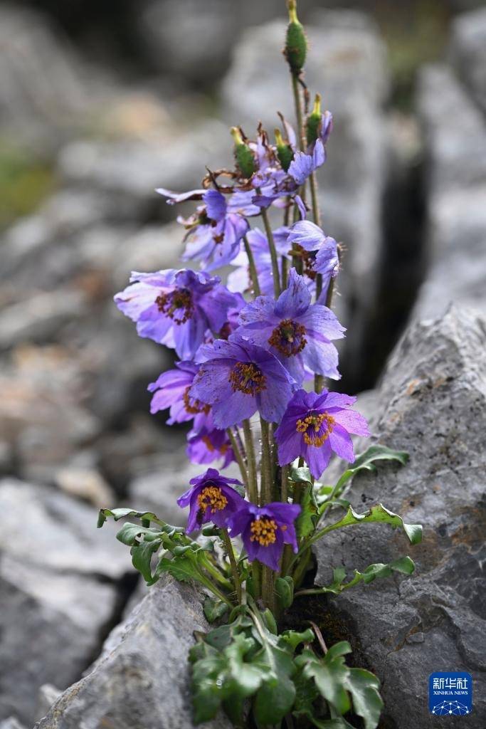 7月23日在云南省迪庆藏族自治州香格里拉市石卡雪山景区流石滩上拍摄的总状绿绒蒿。因为生长环境极为恶劣,绿绒蒿生长周期漫长,生命极其珍贵。