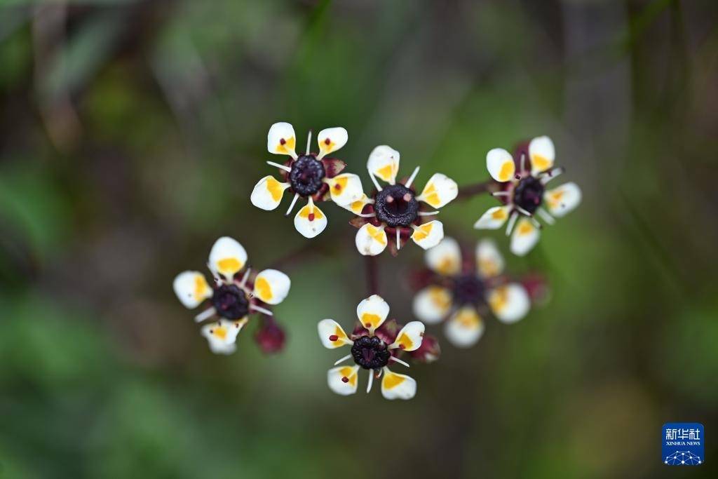 7月23日在云南省迪庆藏族自治州香格里拉市石卡雪山景区流石滩拍摄的黑蕊虎耳草。