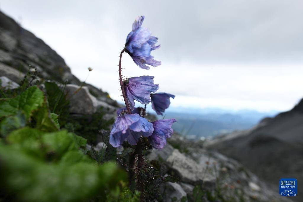 7月23日在云南省丽江市玉龙雪山拍摄的绽放的绿绒蒿。