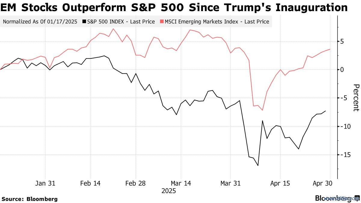 从市场表现来看,自特朗普就职以来新兴市场股票表现(以MSCI新兴市场指数为例)确实优于标准普尔500指数。